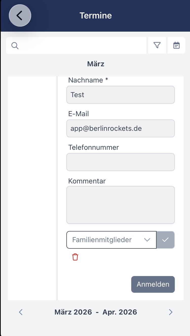 In die Termine kannst du auch deine Familienmitglieder anmelden.